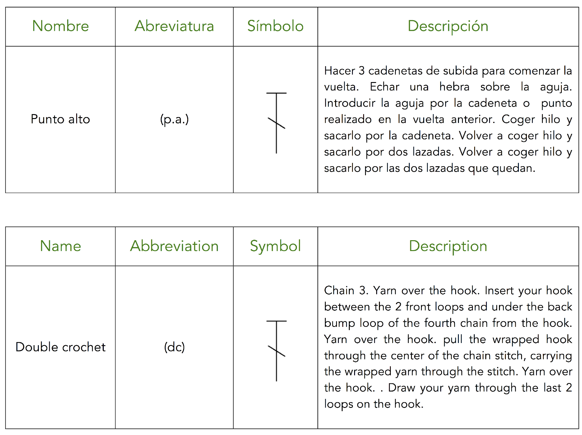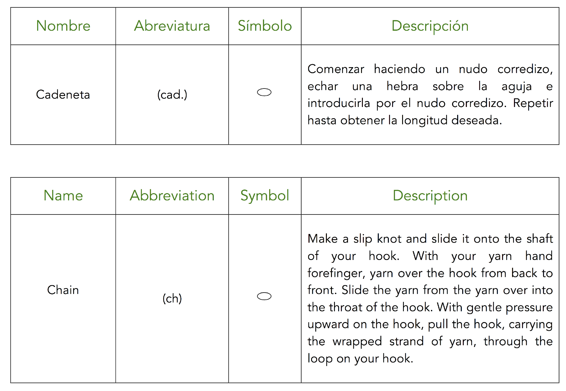 LISTADO DE PUNTOS BÁSICOS DE CROCHET / LIST OF BASIC STITCHES