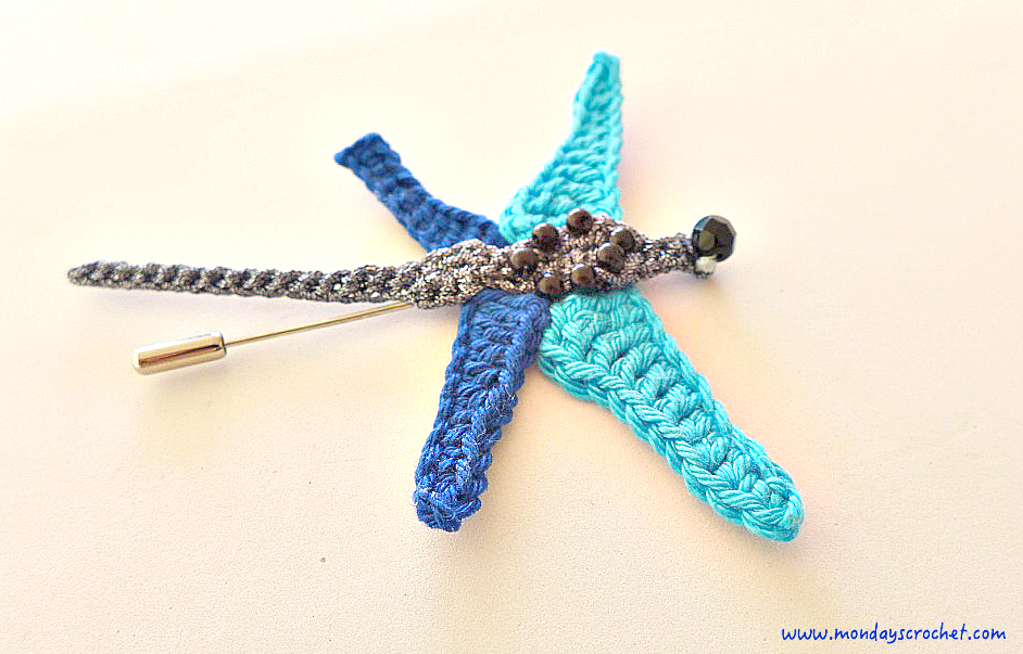 Now you can wear this elegant dragonfly brooch of crochet.
