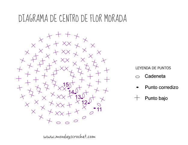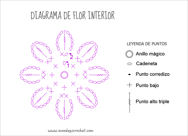 Para tejer la flor interior seguimos este diagrama: