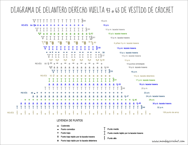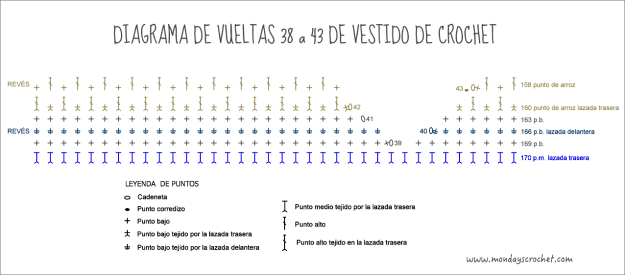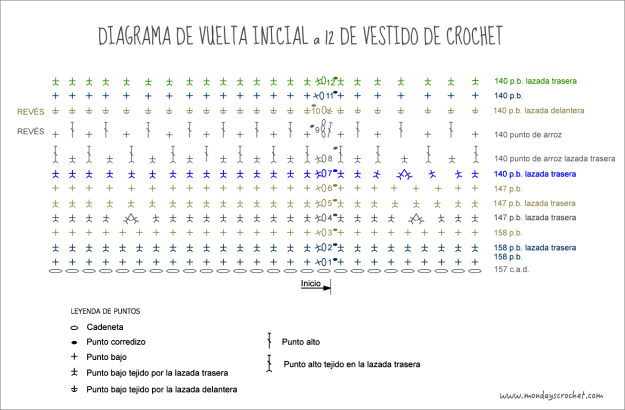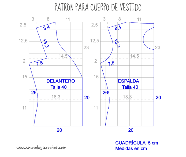 El patrón que seguimos para tejer el cuerpo de nuestro vestido es el siguiente: