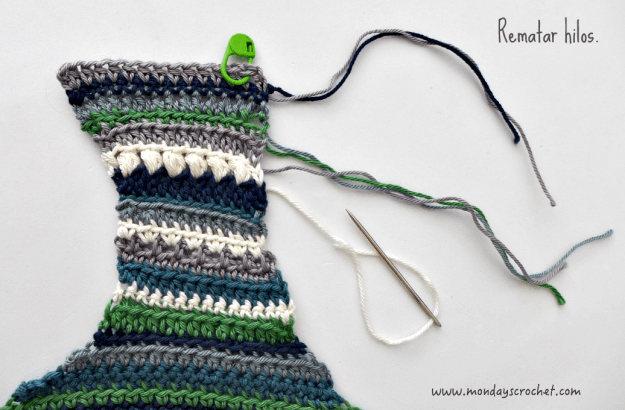 Rematamos el hilo con una aguja lanera y cortamos el hilo sobrante.