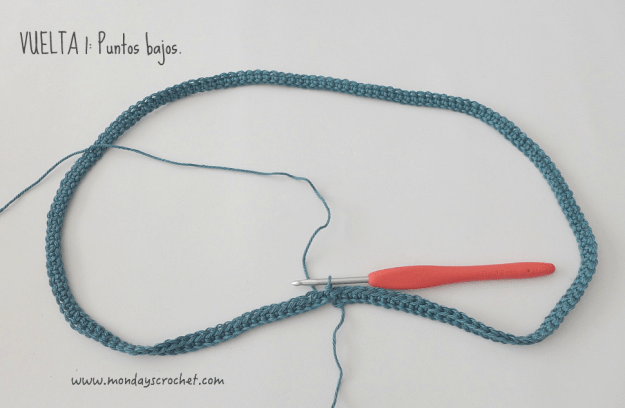 Por tanto, tenemos que hacer 157 c.a.d. en la vuelta inicial.Con color azul agua marina y aguja número 4.
