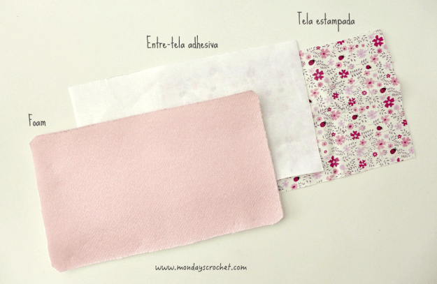 Forramos nuestro bolso con tela estampada, foam y entre-tela adhesiva.