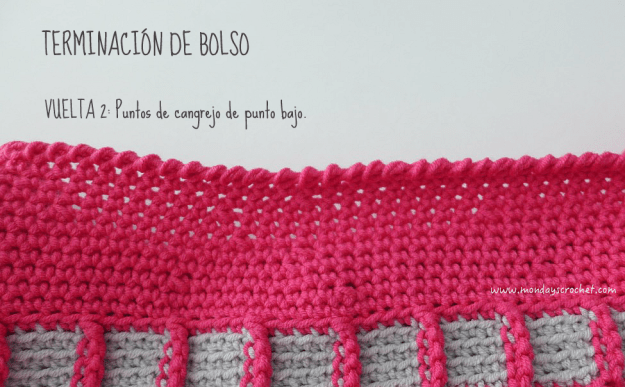 Para la terminación damos 2 vueltas alrededor de las tres solapas y el bolso.