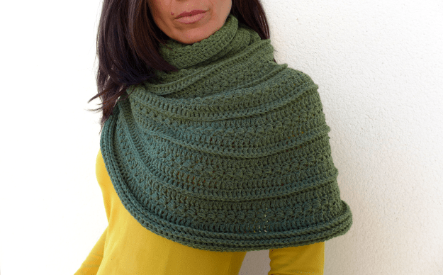 Es muy versátil. También podéis llevar la parte más larga hacia delante como un cuello grande.